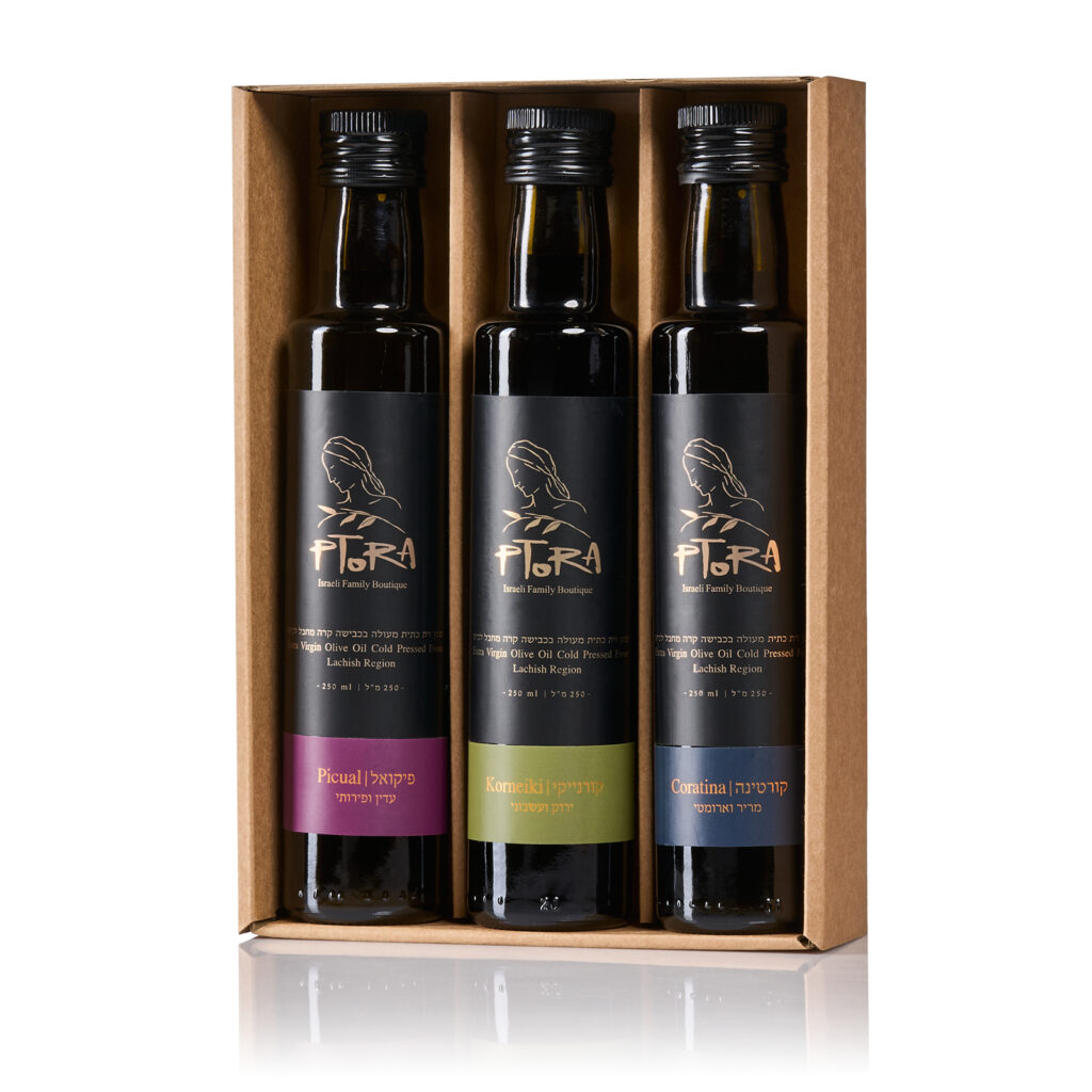 את כלל הזנים והטעמים המיוחדים של שמן הזית כתית מעולה של פתורה תוכלו להשיג במארזים השונים המופיעים בעמוד זה. המלצה חמה: תמיד בחרו את האריזה שתתאים לאופי צריכת שמן הזית במטבח הפרטי שלכם. שמן זית הינו מוצר טבעי בעל רגישות גבוהה מאוד לאוויר ולאור, כל חשיפה לאוויר ואור פוגעת באיכותו לאורך זמן. לכן, בדקו מה צריכת השמן שלכם בתקופה של 2-3 חודשים ובחרו באריזה שמכילה את הכמות המתאימה. ניתן לרכוש כמות גדולה של אריזות ולשמור אותן במקום קריר ומוצל, אך לאחר פתיחת האריזה רצוי לסיים את התכולה בטווח של עד 3 חודשים כדי לשמור על איכותו הגבוהה של שמן הזית.